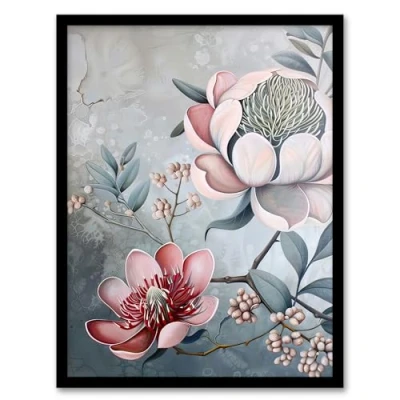 Artery8 Exotic Audubon Style Delicate Flowers Painting Living Room Artwork Framed Wall Art Print A4