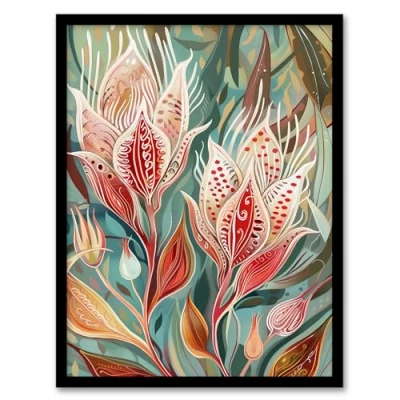 Artery8 Exotic Flower Bloom Patterns Floral Folk Art Living Room Artwork Framed Wall Print A4