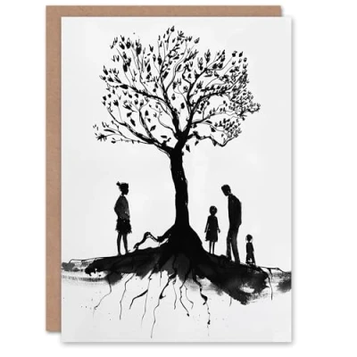 Artery8 Family Roots Elegant Black White Conceptual Art Blank For Him Or Her Birthday Card