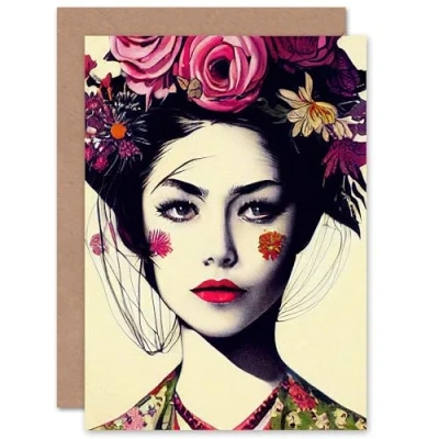 Artery8 Fancy Floral Feminine for Wife Her Mum Sister Daughter Mom Gran Nan Birthday Thank You Congratulations Blank Art Greeting Card