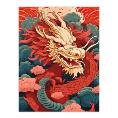 Artery8 Fantasy Dragon Red Blue Ornate Mythical 2024 Chinese Year Of The Extra Large XL Wall Art Poster Print