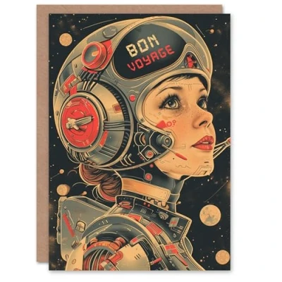 Artery8 Farewell Card Bon Voyage Space Cadet Woman Astronaut For Her Gran Sister Niece Daughter Wife Greeting