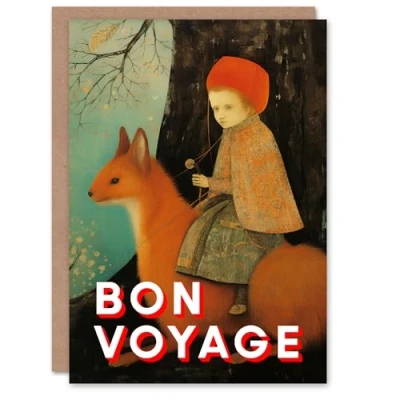 Artery8 Farewell Card Child Riding Weasel Medieval Painting Bon Voyage Blank Arty Art All Occasion Greeting