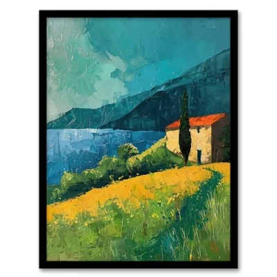 Artery8 Farmhouse Lake District Oil Painting Summer Calm Living Room Artwork Framed Wall Art Print A4