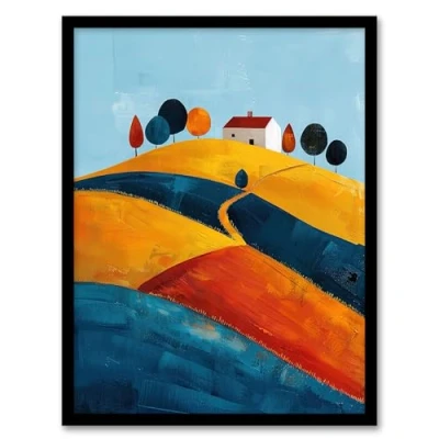 Artery8 Farmhouse on Hill Countryside Landscape Painting For Living Room Artwork Framed Wall Art Print A4