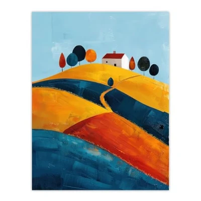 Artery8 Farmhouse on Hill Countryside Landscape Painting For Living Room Large Wall Art Poster Print Thick Paper 18X24 Inch
