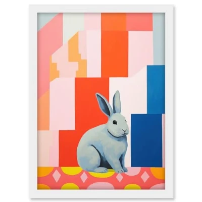 Artery8 Fat White Rabbit Bold Pop Art Colourful Conceptual Modern Artwork Framed A3 Wall Print
