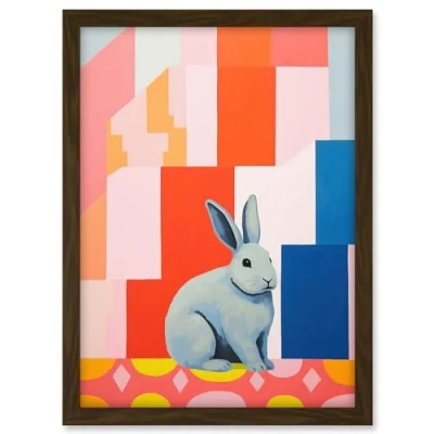 Artery8 Fat White Rabbit Bold Pop Art Colourful Conceptual Modern Artwork Framed A3 Wall Print