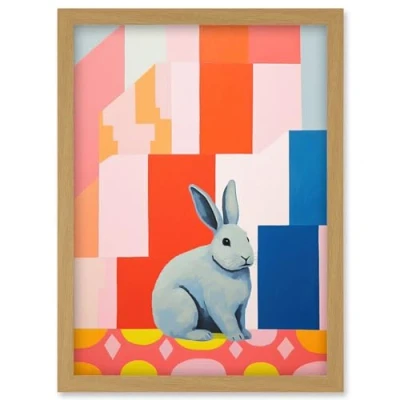 Artery8 Fat White Rabbit Bold Pop Art Colourful Conceptual Modern Artwork Framed Wall Print A4