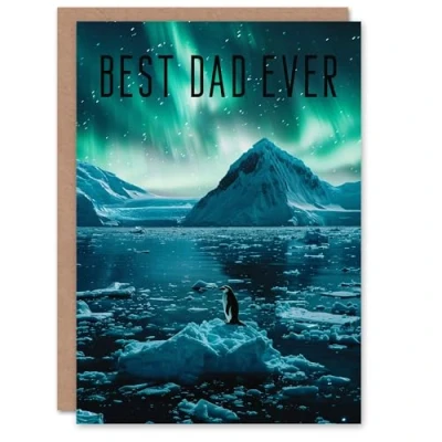Artery8 Father's Day Card Best Ever Penguin Northern Lights For Him Dad Father Greeting