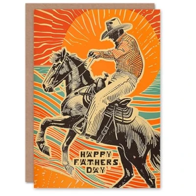 Artery8 Father's Day Card Cowboy Riding Bronco Horse Sunset For Him Dad Father Greeting