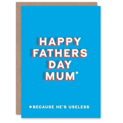 Artery8 Father's Day Card For Mum Because He Is Useless Fun Funny Cheeky Humour Joke Him Dad Father Greeting