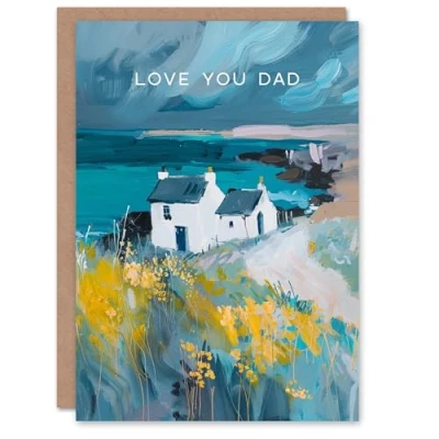 Artery8 Father's Day Card Scottish Seaside Cottage Oil Painting For Him Dad Father Greeting