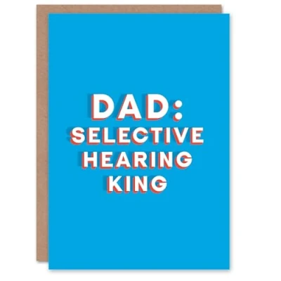 Artery8 Father's Day Card Selective Hearing King Bold Blue Fun Funny Cheeky Humour Joke For Him Dad Father Greeting