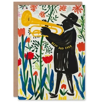 Artery8 Father's Day Card Trombonist Folk Art Best Dad Ever For Him Father Greeting