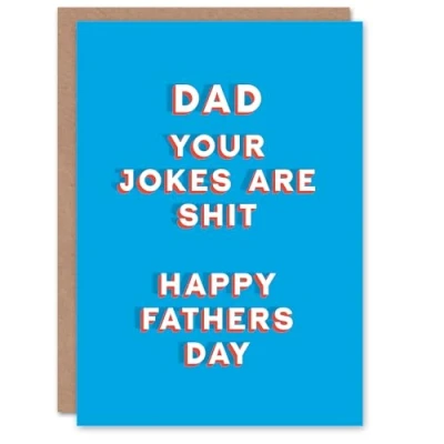 Artery8 Father's Day Card Your Jokes Are Sh*t Bold Blue Fun Funny Cheeky Humour Joke For Him Dad Father Greeting