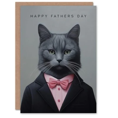 Artery8 Father's Day Greeting Card Bow Tie Cat Lover Portrait For Dad