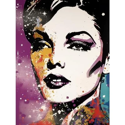 Artery8 Female Glam Rock Glitter Sparkle Purple Gold Blue Red Linocut Portrait Teen Room Extra Large XL Wall Art Poster Print