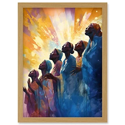 Artery8 Female Gospel Choir Group Singing Hymns Modern Watercolour Painting Artwork Framed Wall Art Print A4