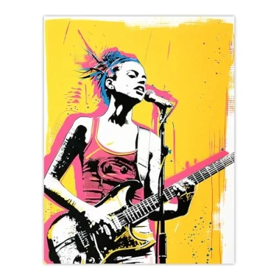 Artery8 Female Punk Music Guitarist Portrait Yellow Pink Living Room Extra Large XL Wall Art Poster Print