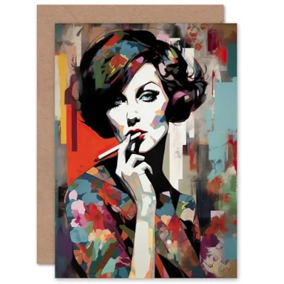 Artery8 Femme Fatale Portrait Floral Fashion Vibrant for Wife Her Mum Sister Daughter Mom Gran Nan Birthday Thank You Congratulations Blank Art Greeting Card