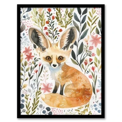 Artery8 Fennec Fox Boho Floral Watercolour Portrait Living Room Artwork Framed Wall Art Print A4