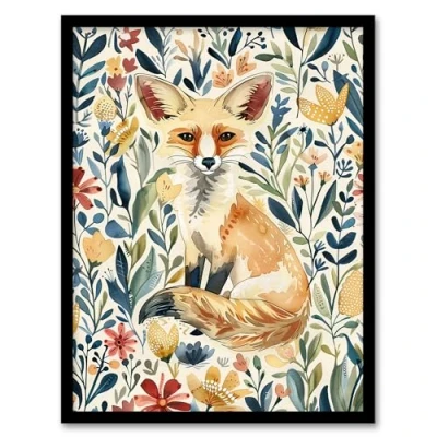 Artery8 Fennec Fox in Wildflower Field Floral Watercolour Living Room Artwork Framed Wall Art Print A4