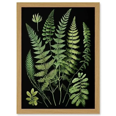 Artery8 Fern Fronds Detailed Leaves Botanical Illustration Artwork Framed Wall Art Print A4