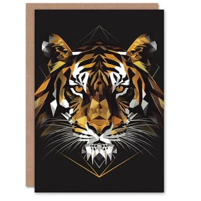 Artery8 Fierce Tiger Polygonal Head Geometric Portrait Blank For Him Or Her Art Birthday Card