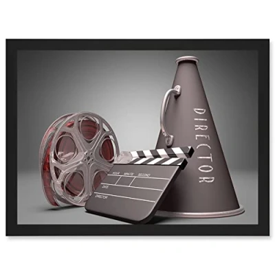 Artery8 Film Director Equipment Clapperboard Reel Megaphone A4 Artwork Framed Wall Art Print
