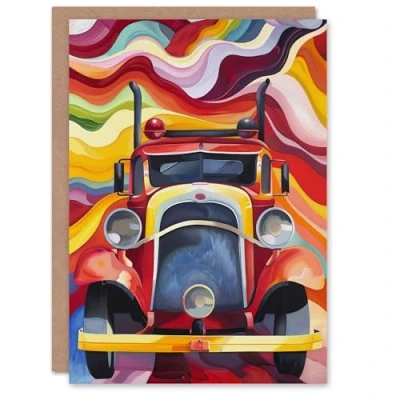 Artery8 Fire Truck Front View Trippy Colourful Abstract Greeting Birthday Card Him Her All Blank