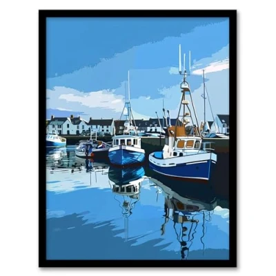 Artery8 Fishing Boats Padstow Harbour Digital Painting Bathroom Toilet Artwork Framed Wall Art Print A4