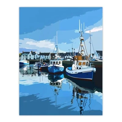 Artery8 Fishing Boats Padstow Harbour Digital Painting Bathroom Toilet Extra Large XL Wall Art Poster Print