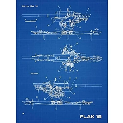 Artery8 Flak 18 Artillery Anti Aircraft Tank Blueprint Plan Art Print Canvas Premium Wall Decor Poster Mural