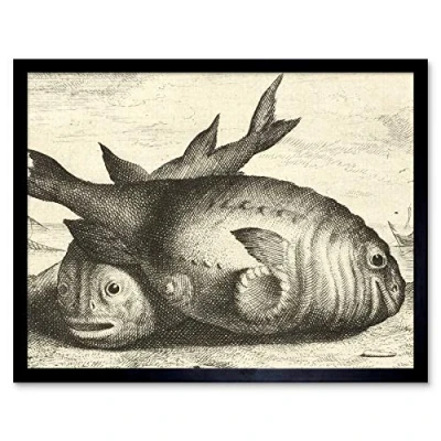Artery8 Flamen Two Porpoises Beach Vintage Drawing Art Print Framed Poster Wall Decor 12x16 inch