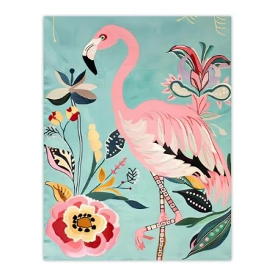 Artery8 Flamingo Bird and Exotic Flowers Bright Painting Living Room Extra Large XL Wall Art Poster Print