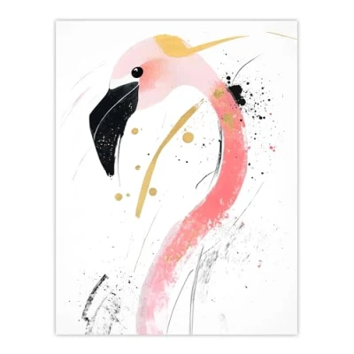 Artery8 Flamingo Bird Black Pink Gold Modern Abstract Living Room Extra Large XL Wall Art Poster Print