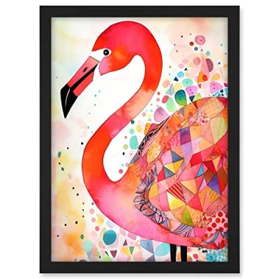 Artery8 Flamingo Bird With Patterns Folk Art Watercolour Painting Artwork Framed A3 Wall Print