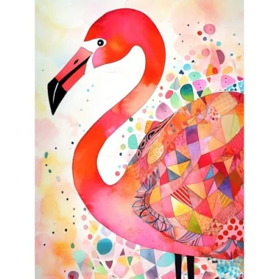 Artery8 Flamingo Bird With Patterns Folk Art Watercolour Painting Extra Large XL Wall Poster Print