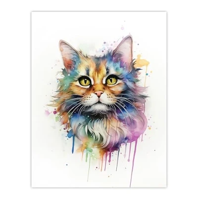 Artery8 Floofster Fluffy Cat Lovers Gift Watercolour Pet Portrait Painting Artwork Large Wall Art Poster Print Thick Paper 18X24 Inch