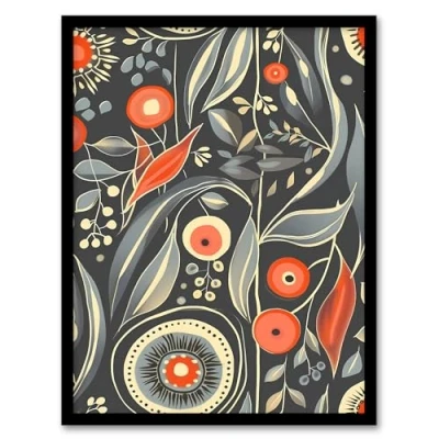 Artery8 Floral Blue and Red Abstract Wildflowers Design Living Room Artwork Framed Wall Art Print A4