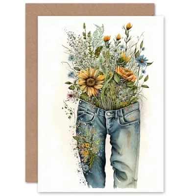 Artery8 Floral Denims for Wife Her Mum Sister Daughter Mom Gran Nan Birthday Thank You Congratulations Blank Art Greeting Card