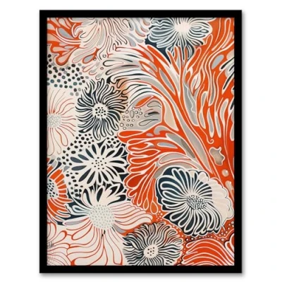 Artery8 Floral Line Pattern Orange Blue Bright Design Living Room Artwork Framed Wall Art Print A4