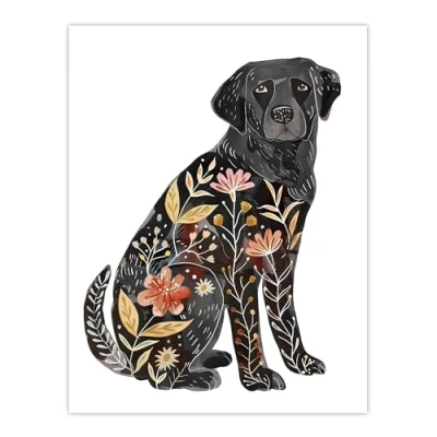 Artery8 Floral Pattern Black Labrador Dog Lover Design Living Room Large Wall Art Poster Print Thick Paper 18X24 Inch