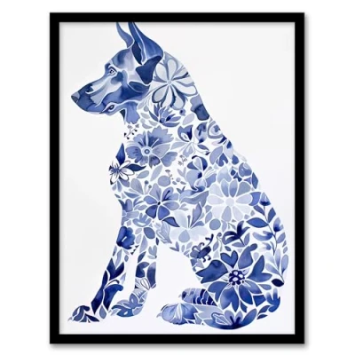 Artery8 Floral Pattern German Shepherd Dog Lover Design Living Room Artwork Framed Wall Art Print A4