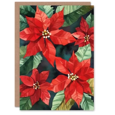 Artery8 Floral Poinsettia Flower Blooms Blank For Him Or Her Art Xmas Festive Christmas Card