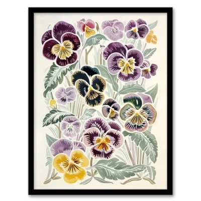 Artery8 Floral Purple Yellow Pansies Wildflower Painting Living Room Artwork Framed Wall Art Print A4