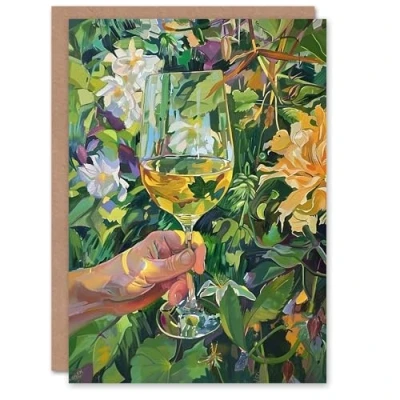 Artery8 Floral White Wine Lover Elegant Oil Painting Blank For Him Or Her Art Birthday Card