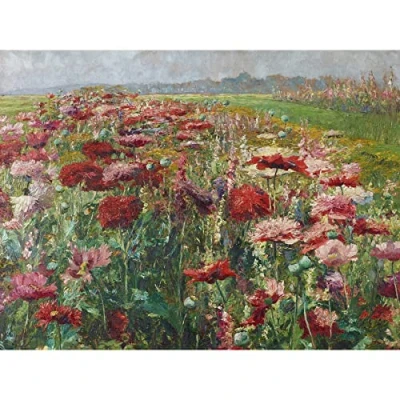 Artery8 Florian Flowering Poppies Meadow Flowers Painting Large XL Wall Art Canvas Print