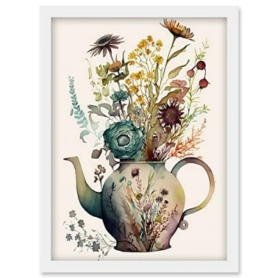 Artery8 Flower Bouquet in a Floral Pattern Ceramic Teapot Artwork Framed Wall Art Print A4